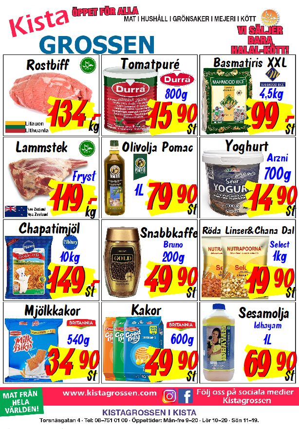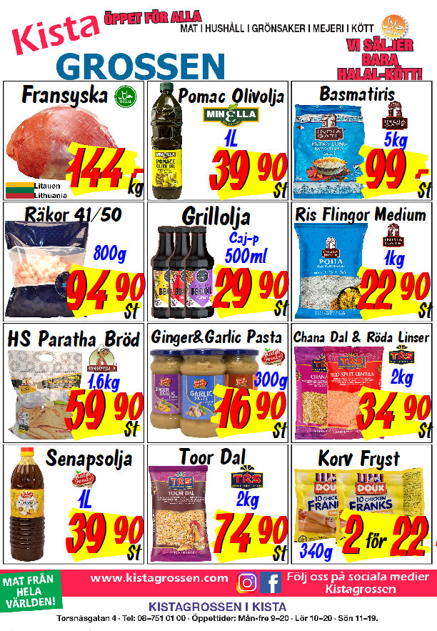 M - F 08:30 - 20:00 Lördag: 10:00 - 20:00 Söndag: 11:00 - 19:00